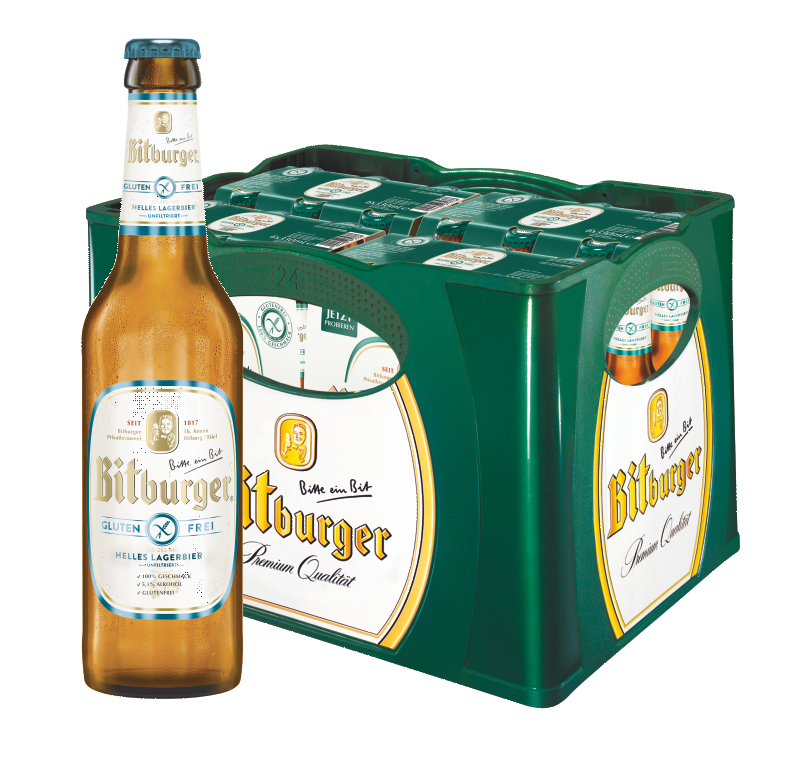 La birra senza glutine non esiste in natura. Attraverso uno speciale procedimento produttivo viene tolto il glutine alla birra Bitburger senza comprometterne le caratteristiche organolettiche. Il risultato è una birra corposa, lievemente maltata e luppolata con un tenore alcolico del 5,1% e senza glutine: la nostra birra Bitburger lager chiara – senza glutine.