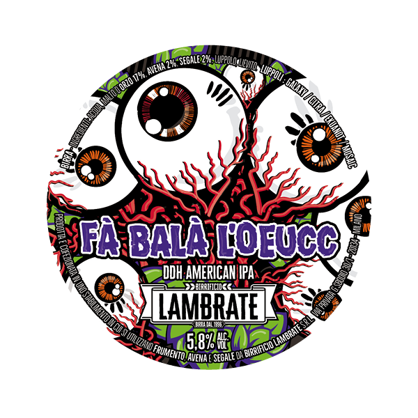 La Fa Balà L'Oeucc è la sintesi degli ultimi anni di lavoro per quel che riguarda le luppolate "Made in Lambrate", il nostro punto di vista rispetto al concetto di IPA in chiave contemporanea. Per questo abbiamo sviluppato una birra chiara con avena e segale caratterizzata dalle note di frutta tropicale conferite dal doppio dry hopping. Per questa birra sono stati utilizzate 4 varietà di luppolo per un totale di circa 30g/l. Disponibile solo in lattina!