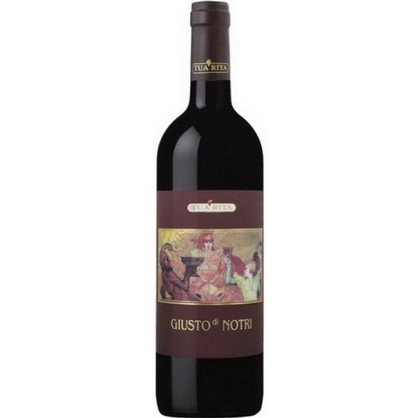 Il vino rosso "Giusto di Notri" è così chiamato in onore della Chiesa di San Giusto di Suvereto e del primo vigneto della tenuta, coltivato a Notri. Questo vino è stato presente sin dagli esordi dell'azienda vinicola Tua Rita e rappresenta tutt'oggi i suoi vent'anni di storia, caratterizzati dalla costante ricerca di equilibrio ed eleganza. La miscela è composta dai classici vitigni bordolesi: Cabernet Sauvignon (80%), Merlot (10%) e Cabernet Franc (10%). I vigneti sono coltivati con il sistema a cordone speronato, con una densità di 8500 ceppi per ettaro e seguono i principi dell'agricoltura biologica. I terreni sono costituiti principalmente da argilla, limo e sabbia, con un elevato contenuto di scheletro, che conferisce al vino un carattere salino e ferroso tipico del territorio. Dopo la raccolta manuale, le uve vengono fermentate in modo spontaneo con lieviti indigeni in grandi botti di legno. Il vino invecchia per 18 mesi in barrique di rovere francese di primo e secondo passaggio